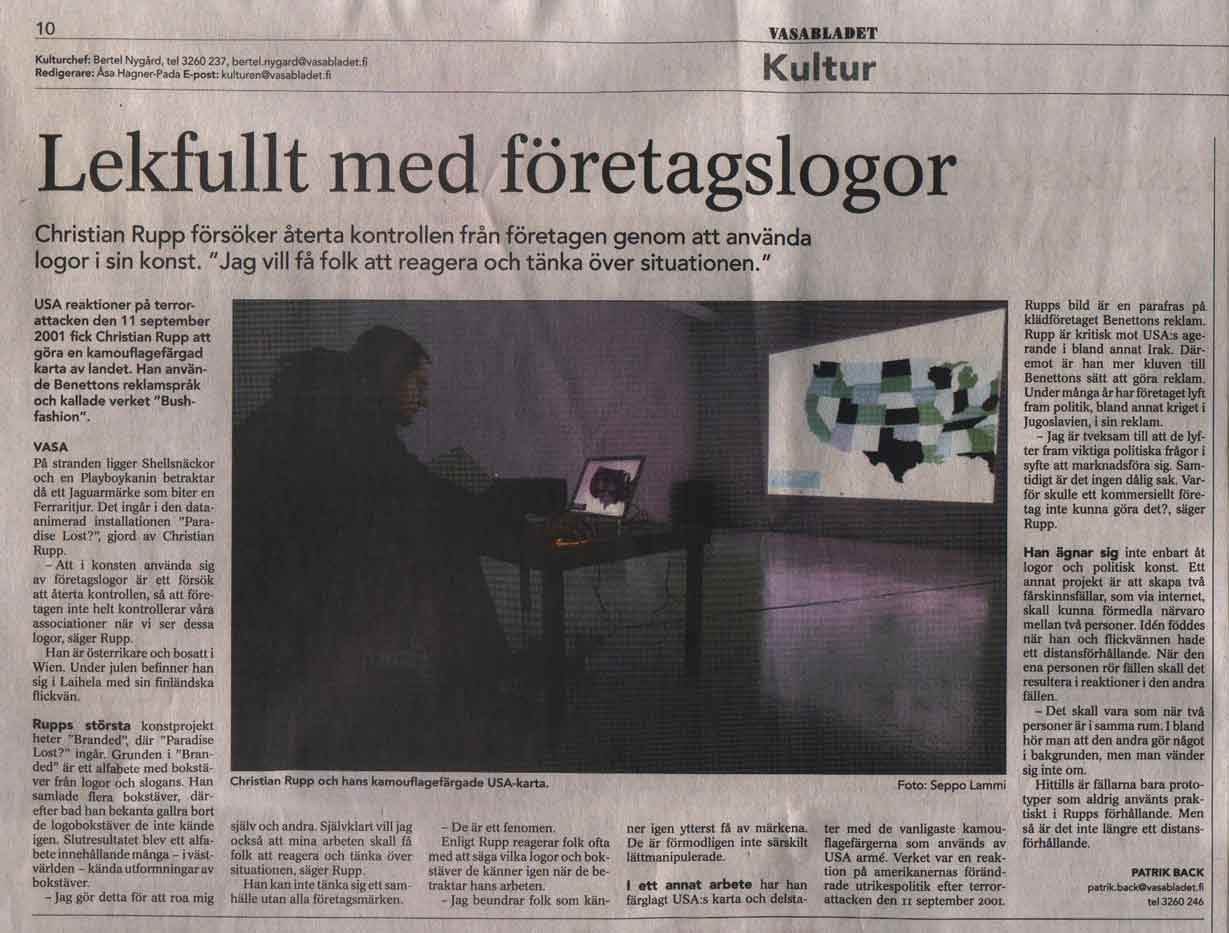 VASABLADET - 2004-12-30 (Über meinen artist-talk Dez. 2004 in Vaasa, schwedischsprachige Zeitung aus Vaasa)